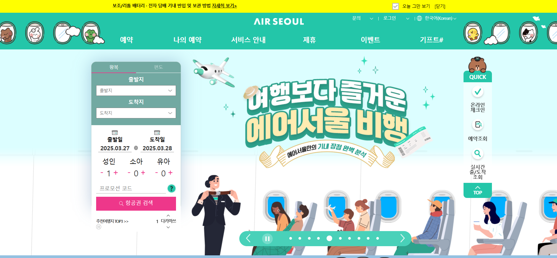 ① '에어서울 공식 홈페이지'에 접속해 주세요.