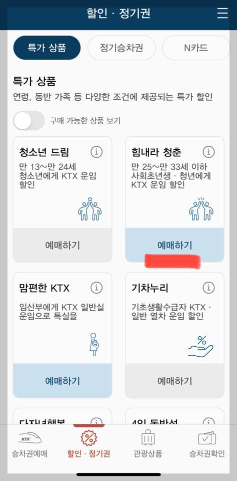 ※ 24세 이하 청소년은 청소년 드림 할인 혜택을 이용하면 된다.
