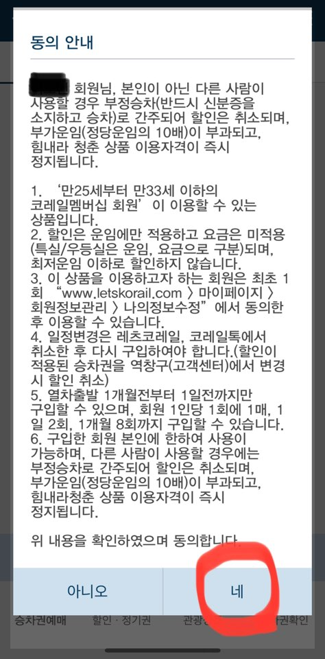 ▶힘내라 청춘은 출발 1일전까지 레츠코레일, 코레일톡에서 할인대상열차 구매시 할인 적용된다. (당일 예약 불가능)